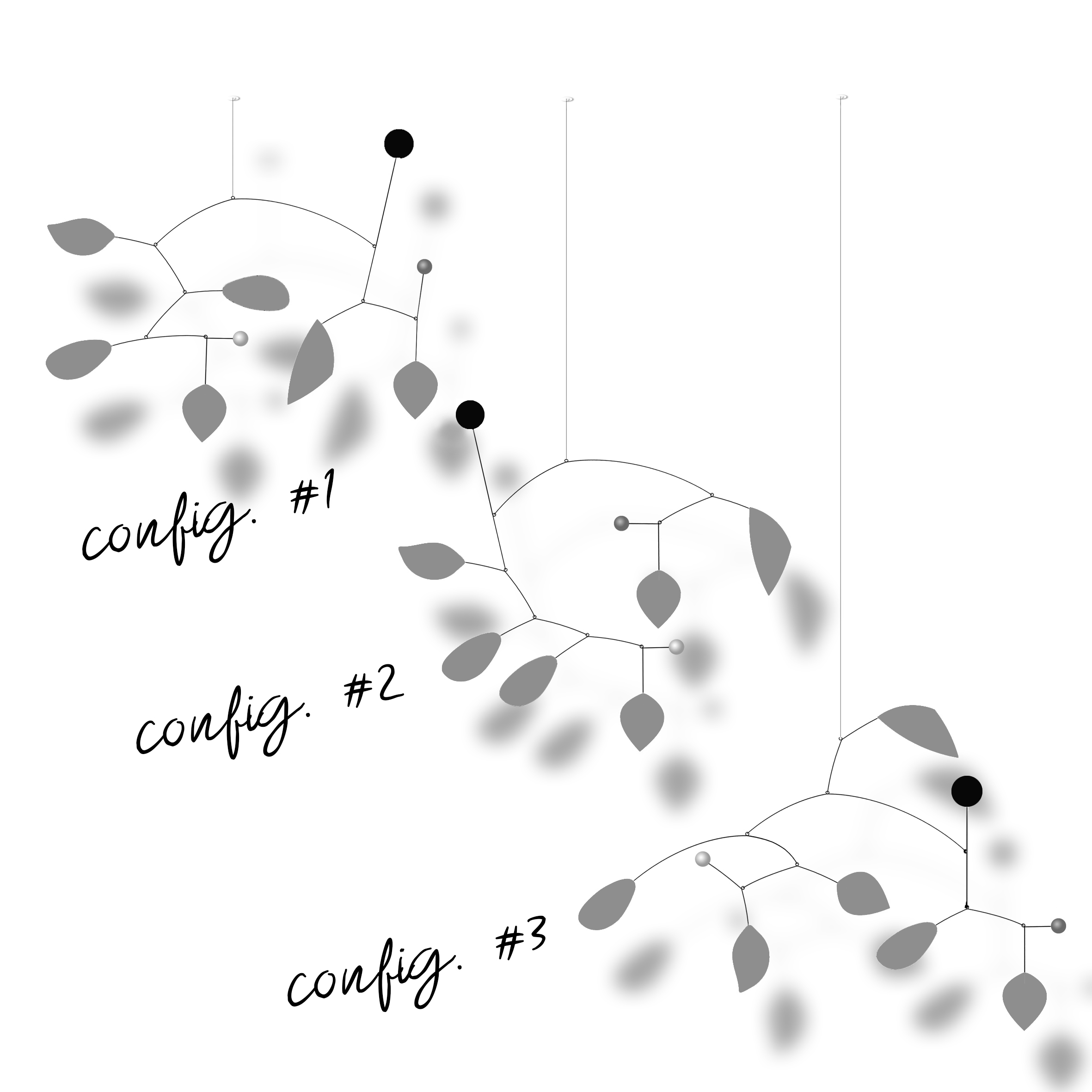 Vous avez une âme de créateur et souhaitez revêtir l’habit de l’artiste ? Bravo ! Prenez-vous pour Alexander Calder et composez le mobile de vos rêves en piochant les composants (pales d’acier laqué et boules de bois laqué ou naturel) parmi nos accessoires.