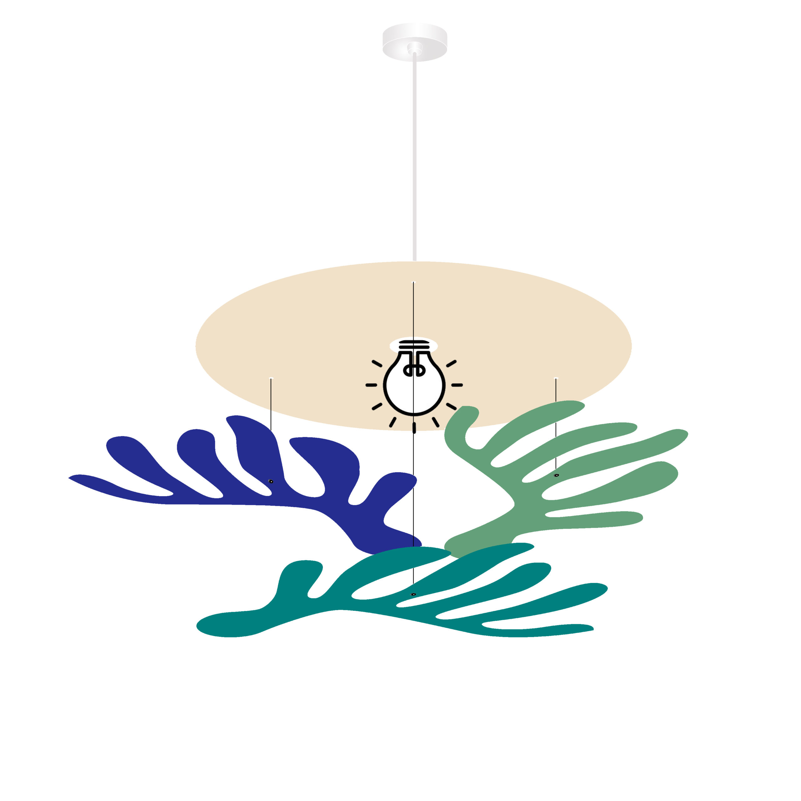 Cette suspension se compose de 3 «anémones» suspendues à un réflecteur associé à une douille E27. Nous vous conseillons d’utiliser une ampoule avec réflecteur ou une belle ampoule à filaments.