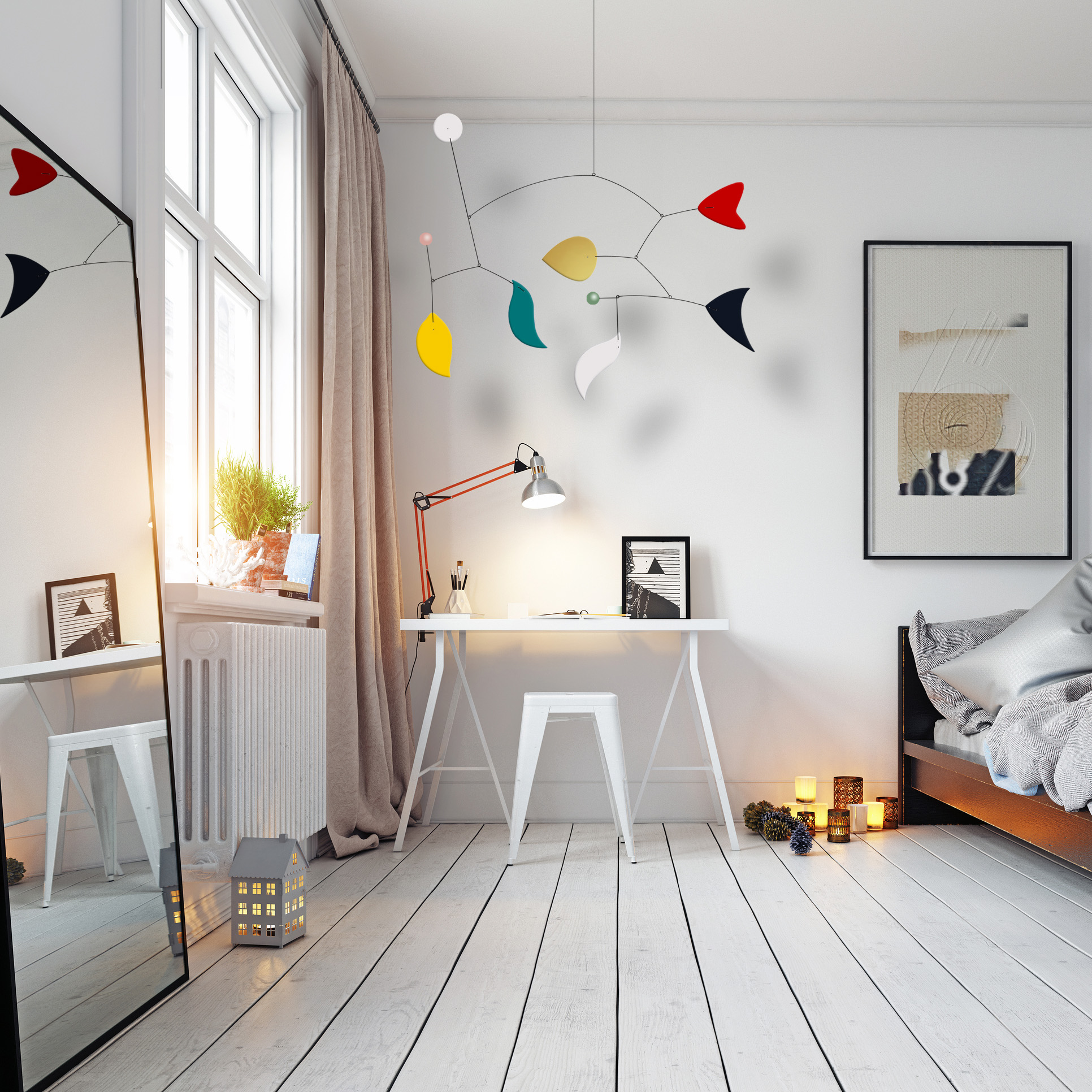 Couleurs chatoyantes, un style contemporain et indémodable à la fois, Le Songe d’une Nuit d’Eté vous émerveillera par la danse de ses feuilles colorées. Virevoltant au gré des mouvements d’air, ce mobile de 100cm d’envergure et de 80cm de haut saura décorer votre intérieur sans empiéter sur votre espace de vie et vous apporter plaisir des yeux et sérénité de l’esprit.